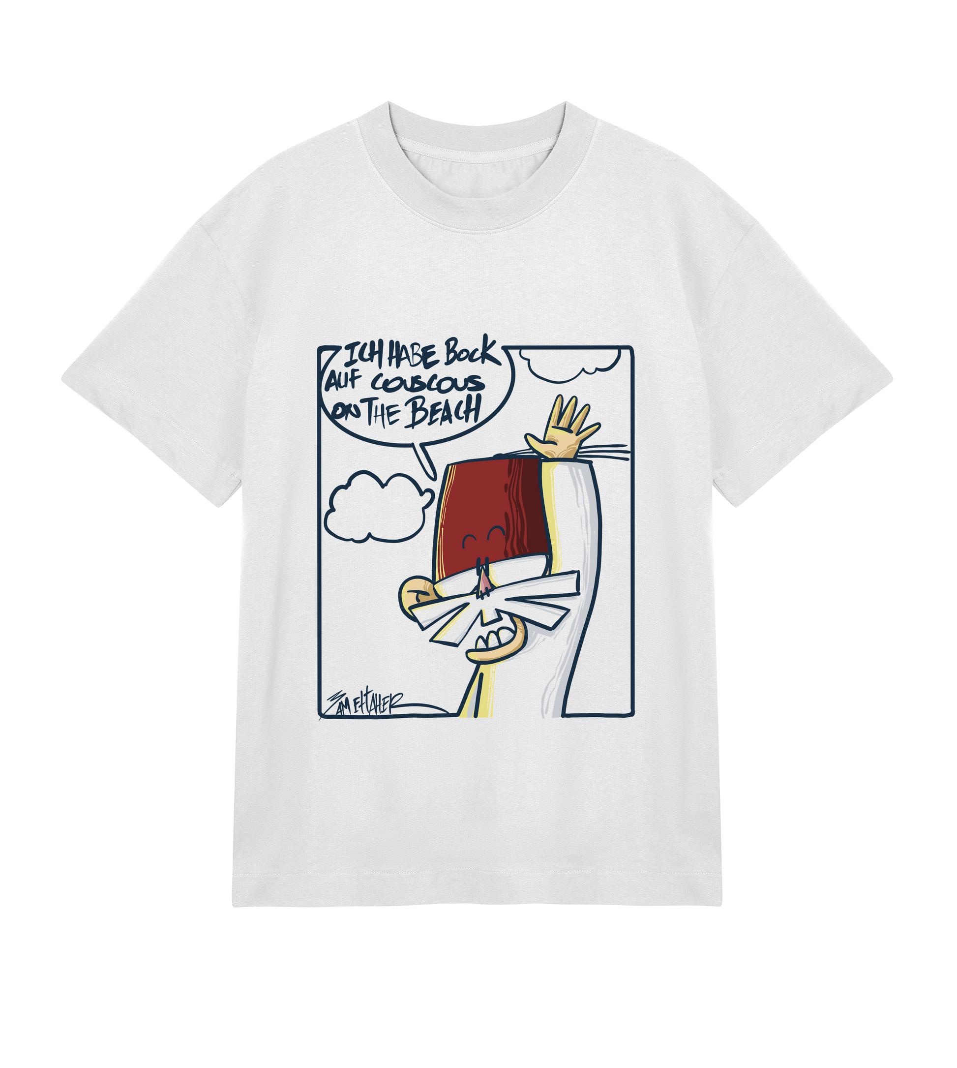 Auf dem Kleidungsstück ist Onkel Ettaher zu sehen, mit Credits für den CHACK selbst. Besuchen Sie den Künstler selbst und teilen Sie ihm etwas Liebe hier: Chak Art World